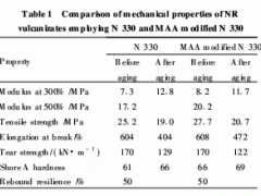 本發(fā)明提供一種紫炭黑增強(qiáng)天然橡膠制造工步,本發(fā)明利用紫炭黑填充天然橡膠基體,來(lái)用傳統(tǒng)混煉工藝制備紫炭黑/天然橡膠混煉膠,紫炭黑對(duì)天然橡膠具有補(bǔ)強(qiáng)效果,拉伸強(qiáng)度、撕裂強(qiáng)度、邵氏A硬度均比未填充紫炭黑的天然橡膠膠料增大,同時(shí)添加紫炭黑和改性紫炭黑均能使 NR 的熱穩(wěn)定性提高。