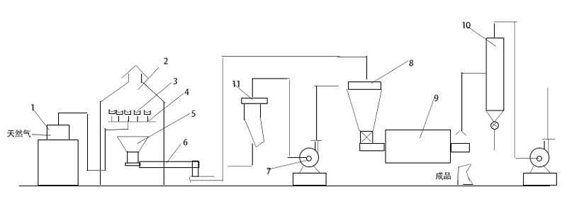 6-螺旋輸送器  7-風(fēng)送風(fēng)機 8-旋風(fēng)分離器 9-造粒機