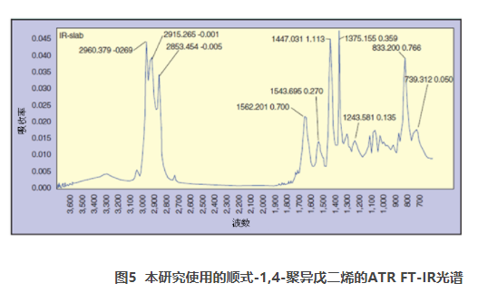 Kardan及其同事的傅立葉變換紅外光譜(FT-IR)外部反射實驗表明,當(dāng)聚合物涂覆在基材上時,聚合物的每一結(jié)構(gòu)亞單位在外表面上均具有一定的取向。聚合物在表面上的取向及其對基材的粘附取決于其構(gòu)象變化,而這些變化主要受聚合物與介質(zhì)的相互作用影響。在本研究中,我們利用衰減全反射紅外光譜(ATR-FTIR)作為主要技術(shù),來分析炭黑-橡膠復(fù)合物涂覆在金屬基材上時聚合物結(jié)構(gòu)的變化。紅外光譜測定結(jié)果與硫化復(fù)合物在金屬基材上成型時的實測搭接剪切的相關(guān)性,在闡明炭黑的補強(qiáng)機(jī)制方面頗有用處。由于天然橡膠與許多其它彈性體的結(jié)構(gòu)相似,我們從該分析中得出的結(jié)構(gòu)信息可傳遞給其它彈性體-炭黑膠黏劑和密封劑體系。
