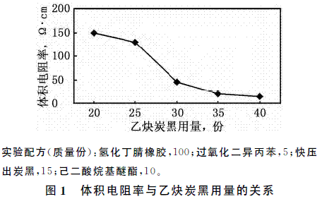 乙炔炭黑用量對氫化丁腈橡膠電性能的影響見圖1。