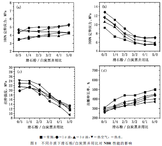 2)加入滑石粉有利于提高膠料的耐熱性能、耐油性能及耐水性能,可應(yīng)用于密封領(lǐng)域,如O型圈和油封配方當(dāng)中。