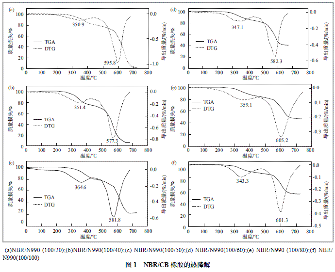 對(duì)N990炭黑填充NBR膠料的熱穩(wěn)定性進(jìn)行了討論。采用如下分析方法: