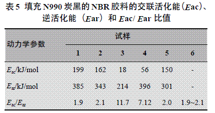 ( 2)從流變儀上獲得的動(dòng)力學(xué)研究結(jié)果表明,N330 炭黑可降低所有橡膠膠料的活化能,總體上硫化速率比N990炭黑高得更多。