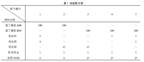 氯丁橡膠CR,牌號(hào)A90、B30,日本電氣化學(xué)工業(yè)株式會(huì)社產(chǎn)品;氧化鋅,工業(yè)級(jí),上海京華化工廠產(chǎn)品;氧化鎂,工業(yè)級(jí),上海京華化工廠產(chǎn)品;氧化鉛,工業(yè)級(jí),天津安明恒信橡膠商貿(mào)公司產(chǎn)品;炭黑,牌號(hào)N330,天津卡博特公司產(chǎn)品。