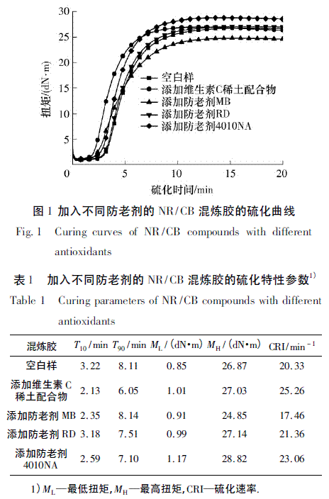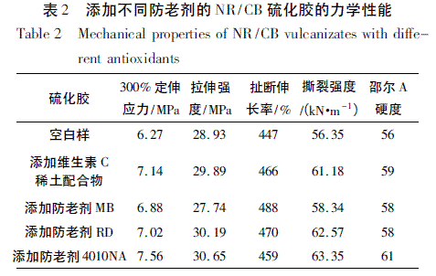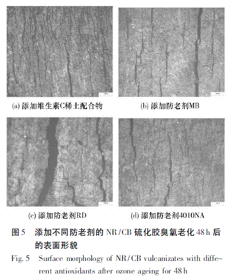 ( 4) 維生素C 稀土配合物在NR/CB 硫化膠中具有突出的防臭氧老化性能,其效果甚至優(yōu)于目前公認(rèn)的具有最佳耐臭氧性能的防老劑4010NA.