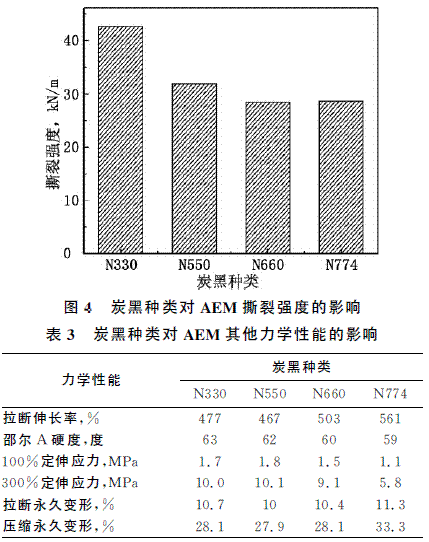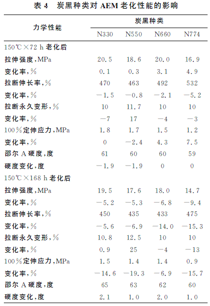表4為炭黑種類對AEM 老化性能的影響。