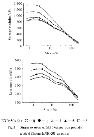 2·3 ENR用量對(duì)SBR /silica復(fù)合材料的影響