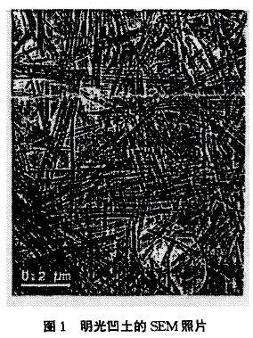 凹土填料的包復(fù)效果,采用日本日立公司S - 570型掃描電鏡(SEM)進(jìn)行測試,如下圖2,3,4,5所示。