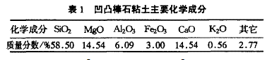 (1)凹土原料粉:安徽明光凹凸棒石粉廠產(chǎn)品,凹土含量≥75 %(質(zhì)量分?jǐn)?shù)),其化學(xué)成分見表1.