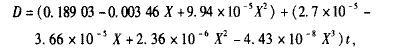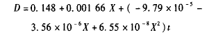 再用最小二乘法對(duì)圖1中所示數(shù)據(jù)進(jìn)行線性回歸,得到膠料的D隨白炭黑用量和溫度變化的基本關(guān)系式: