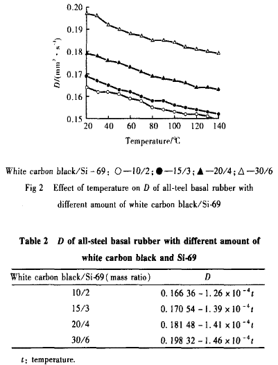 白炭黑和偶聯(lián)劑Si-69對(duì)全鋼基部膠料熱擴(kuò)散系數(shù)的影響