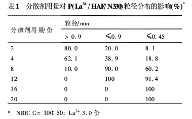 2.1.1 分散劑用量對P(La3+/HAF/N330)粒徑分布的影響