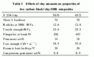 炭黑/黏土/丁苯橡膠納米復合材料的性能