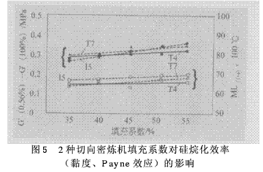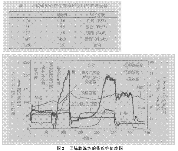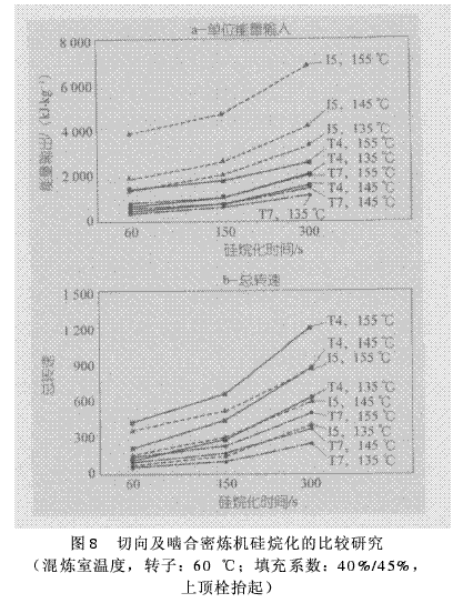 (2)不同的密煉機和轉(zhuǎn)子類型——從進料性能、硅烷化效率和焦燒危險性等方面,對轉(zhuǎn)子構(gòu)形和能力不同的密煉機進行了比較;