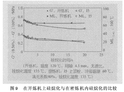 (3)在開煉機上硅烷化——預計在開煉機上硅烷化效率很高,因為其乙醇排除效果良好;