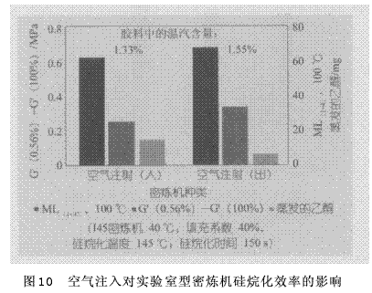 (3)空氣注入對硅烷化效率具有積極的作用,但是不會影響膠料的整體性能。