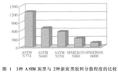 市場(chǎng)上出現(xiàn)的新炭黑已經(jīng)在工業(yè)橡膠制品中得到應(yīng)用,炭黑生產(chǎn)商和用戶對(duì)其良好的潛力進(jìn)行了試驗(yàn)和選擇。現(xiàn)在,以卡博特公司的幾種新炭黑為例,簡(jiǎn)要說明它們賦予膠料的各種性能。2. 1 膠料的分散性更好