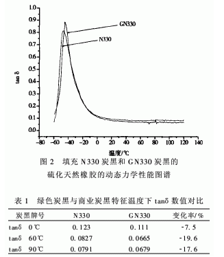 2.2綠色炭黑N330對硫化天然橡膠動態(tài)力學(xué)性能的影響
