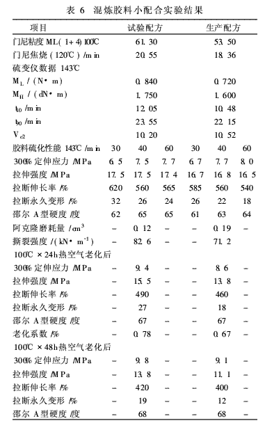 正常生產(chǎn)配方中炭黑采用國(guó)內(nèi)常用炭黑,其余均同實(shí)驗(yàn)配方。