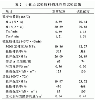 為進一步考察配方的工藝性能,進行了車間大配合試驗。結(jié)果見表3,從物性結(jié)果可以看出,其結(jié)果與小配合試驗結(jié)果基本吻合。