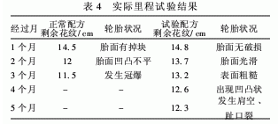 3.配方投人生產(chǎn)后,定期抽查輪胎耐久性能良好,胎面無任何質(zhì)量問題。進行實際里程試驗效果良好。