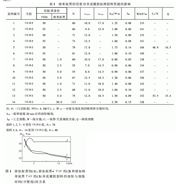 該文的目的旨在研究規(guī)定成份的爆燃法納米炭黑的用量對通用的順式1,4-聚異戊二烯橡膠膠料流變性能的影響。