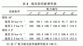 從表4可以看出,全白炭黑硫化膠的耐磨性能優(yōu)異;白炭黑用量為20和30份的硫化膠耐磨性能也較好,這可能是易分散白炭黑在膠料中的分散性較好,與橡膠之間作用強的緣故。