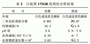 白炭黑175GR的理化分析結果見表2。從表2可以看出,白炭黑175GR的理化性能達到公司指標要求。