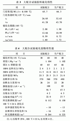 用試驗配方進行大配合試驗,并與生產配方進行比較,其結果見表3和4。