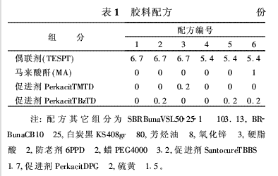 為了提高硫化效率,在典型綠色輪胎膠料中使用了秋蘭姆類促進(jìn)劑(例如TMTD或TBzTD,見(jiàn)表1)。