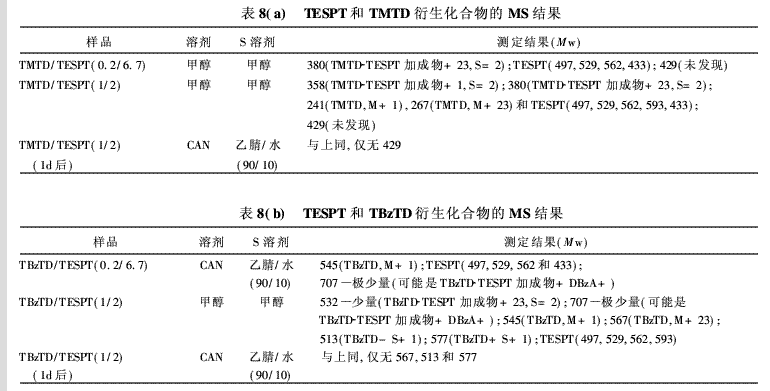 為了解釋所觀察到的TBzTD與TMTD性能方面的差異,進(jìn)行了一些分析工作。