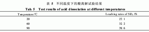 表5是采用8. 5mol/L的H2SO4,在不同溫度下離解4. 0h的實(shí)驗(yàn)結(jié)果,如表5所示,隨著離解溫度的升高, SiO2的浸出率越高,因此本文采用酸離解溫度為90℃。