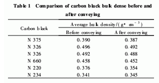 d)對于堆積密度相對較低的N 234和N 375等炭黑,其輸送的平均料氣體積比在16·7 ~20·0。對于堆積密度較大的N 326和N 660等,其輸送的平均料氣體積比應在22·0~24·3。