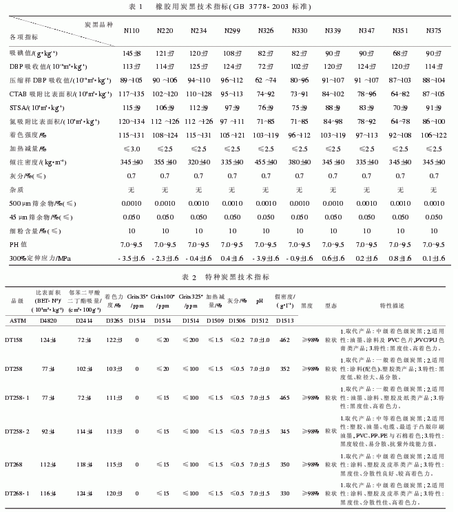 橡膠用炭黑及特種炭黑主要性能對(duì)比