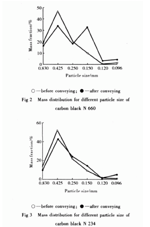 在氣力輸送過程中炭黑粒子的破碎問題已經(jīng)引起橡膠界的廣泛關注。炭黑的破碎率與炭黑的輸送能力、輸送耗氣量、輸送的可靠性、輸送的環(huán)保指標,同樣是衡量氣力輸送系統(tǒng)設計技術(shù)水平的重要指標之一。通過實驗分析炭黑的物性對其破碎率的影響,以及炭黑在氣力輸送過程中的破碎機理,對氣力輸送系統(tǒng)的優(yōu)化設計,提高系統(tǒng)的使用性能,從而提高橡膠制品的質(zhì)量具有相當重要的意義。