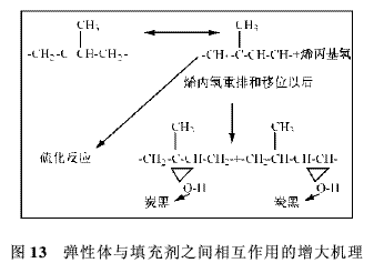 圖13所示了一個(gè)可能存在的機(jī)理,或許正是這個(gè)機(jī)理使彈性體與填充劑之間的相互作用增大了。