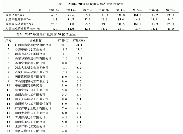 2000年以來,隨著我國國民經(jīng)濟,尤其是汽車和輪胎工業(yè)的快速發(fā)展,加之同期鋼鐵工業(yè)和煉焦工業(yè)的快速發(fā)展,炭黑市場需求旺盛,炭黑產(chǎn)能、產(chǎn)量隨之快速增長。2000~2007年,炭黑產(chǎn)量年均遞增18. 5%,表觀消費量年均增長17·1%。2006年我國炭黑產(chǎn)量達(dá)到185.2萬t,第一次超過美國,居世界第一位。2007年炭黑產(chǎn)量又創(chuàng)新高,達(dá)到230萬t,穩(wěn)居世界第一。進(jìn)入2007年,隨著世界經(jīng)濟格局的變化,能源、資源價格的攀升以及我國以可持續(xù)發(fā)展為核心的科學(xué)發(fā)展觀的推進(jìn)和深化,炭黑工業(yè)面臨著以節(jié)約資源、節(jié)能減排和環(huán)境保護為主要內(nèi)容的新形勢,如何克服“兩高一資”這一決定性的挑戰(zhàn)擺在了我們的面前。