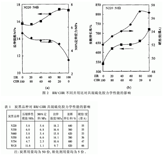 采用氯化丁基橡膠與丁基橡膠并用可以改善丁基橡膠的力學(xué)性能和加工性能,同時(shí)還可以縮短丁基橡膠的硫化時(shí)間,提高并用膠的界面粘合強(qiáng)力。本課題研究了IIR/CIIR并用比、炭黑、軟化劑對IIR/CIIR共混硫化膠的壓縮彈性模量和力學(xué)性能的影響,為研制適用于工程需要的阻尼材料提供參考。