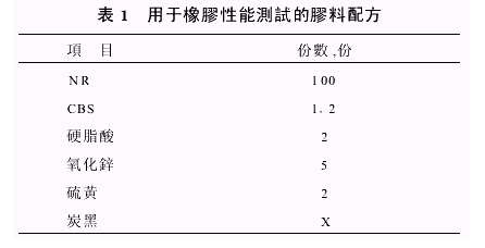 所有炭黑品種由SidRichardson炭黑公司提供。常規(guī)炭黑品種有:N110、N220、N330、N550、N772實驗炭黑品種有:A 1、A 2、A 3。