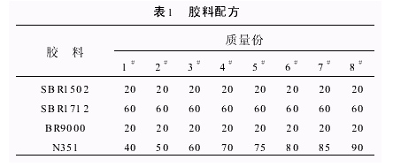 生膠均為齊魯石化產(chǎn)品;炭黑為新工藝高耐磨炭黑N351,N351是一種粒徑較粗、結(jié)構(gòu)較高的品種;其它一些輪胎橡膠工業(yè)常用的輔助材料和添加劑。