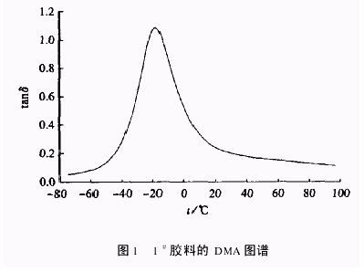 實(shí)驗(yàn)在德國NETZSCH公司生產(chǎn)的DMA242儀器上進(jìn)行,實(shí)驗(yàn)條件為:加熱速率3K/min,加熱頻率10Hz,載荷2N,振幅120μm,液氮?dú)夥?溫度范圍為-100~100℃。實(shí)驗(yàn)配方如表1所示。