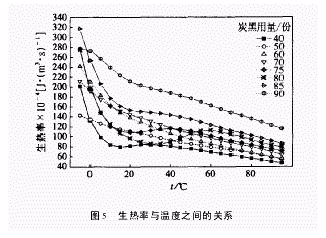 (3)生熱率隨溫度的升高而降低,隨炭黑用量的增加而增加。