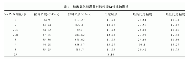2 .1納米氧化鋅用量對膠料流動性能的影響
