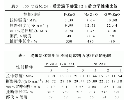 2 .5納米氧化鋅的用量不同對膠料力學(xué)性能的影響