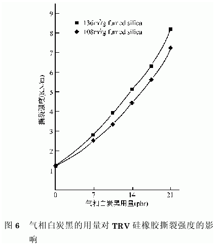 2.2.1氣相白炭黑對RTv硅橡膠力學(xué)性能的影響
