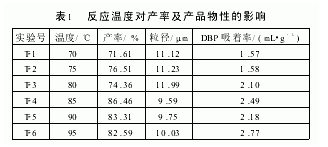 2.1 反應溫度對產(chǎn)率及產(chǎn)品物性的影響
