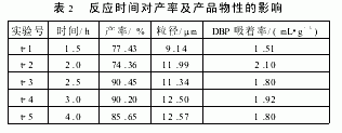 2.2 反應時間對產(chǎn)率及產(chǎn)品物性的影響