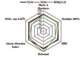 HMQ-L121推薦應(yīng)用于低滾阻要求的全鋼胎輪胎胎面,有效降低滯后性能的同時沒有犧牲補強性和磨耗性能。