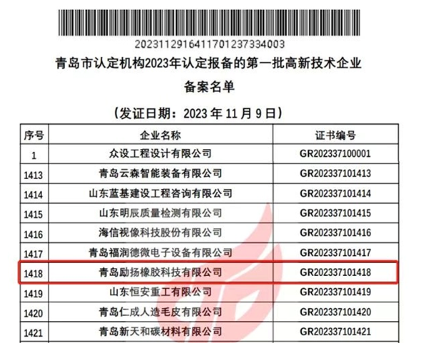 【炭黑產業(yè)網(wǎng)】12月5日消息,青島市高新技術企業(yè)認定管理工作網(wǎng)最近發(fā)布了關于2023年首批高新技術企業(yè)備案的公告,令青島勵揚橡膠科技有限公司備受矚目。