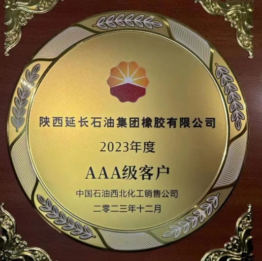 延長(zhǎng)橡膠榮膺中石油西北化銷(xiāo)2023年度AAA級(jí)客戶(hù)